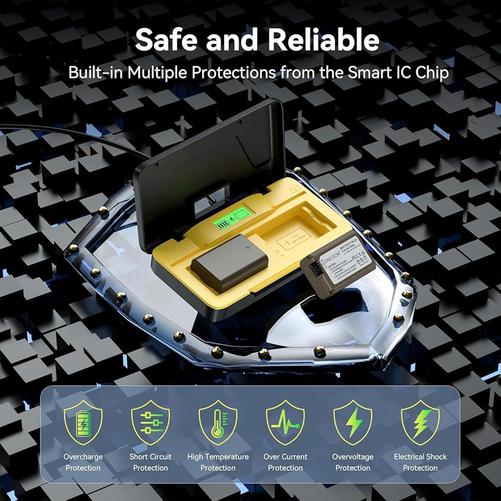 【20W fast charge, save 50% charge time】 Each Sony NP-FW50 battery has a capacity of 1300mAh. ENEGON's fast charging technology and 20W power significantly improve charging efficiency, saving you 50% of time compared to conventional chargers. Restore energy quickly so you are always ready to take photos.
