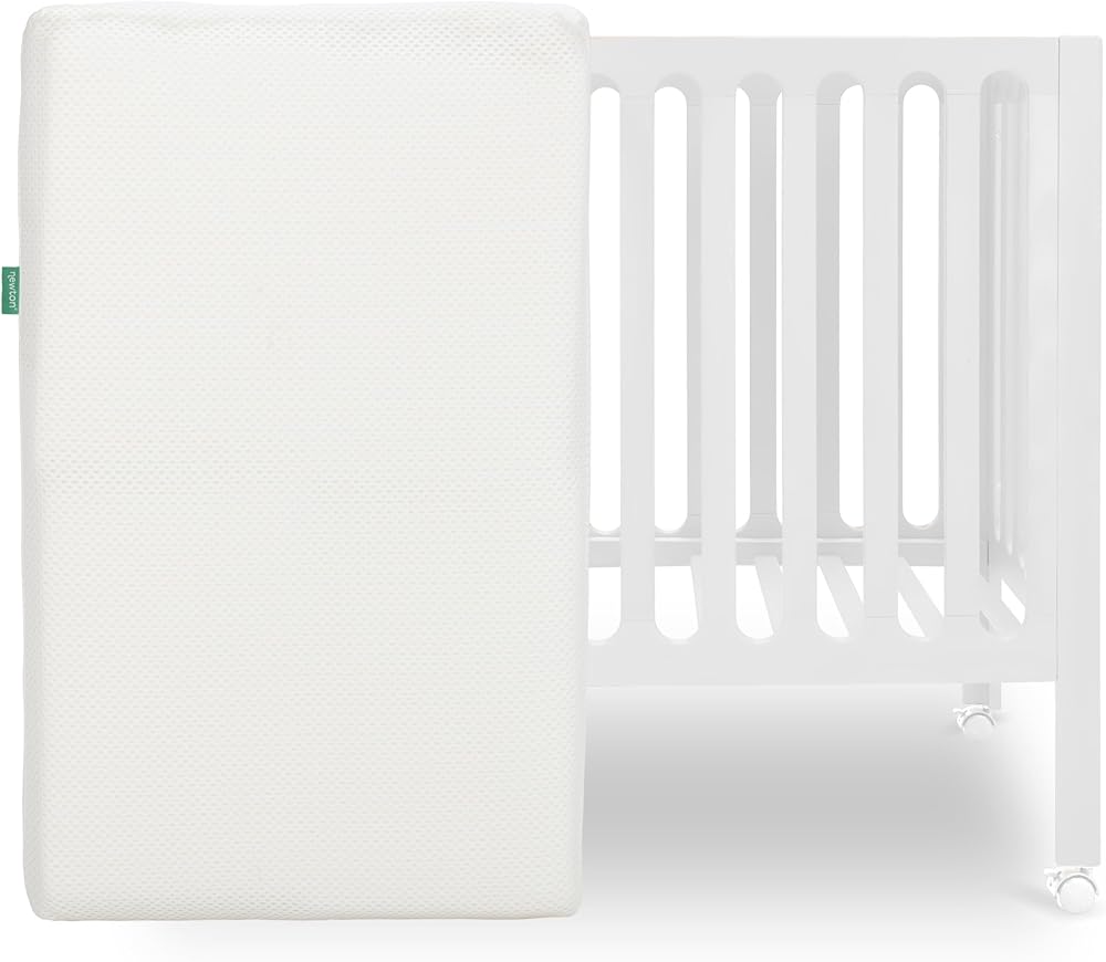 Discover the elegance and durability of the Newton Baby Galileo Mini Crib, a modern classic designed for smaller spaces. Crafted from sustainably sourced solid Beech wood from France, this hardwood crib boasts a small footprint, locking caster wheels for easy movement, and two mattress height settings to adjust as your baby grows. Finished in a non-toxic, multi-step painting and staining process, it meets safety standards set by ASTM International and U.S. CPSC. The Galileo Mini Crib includes a premium, ultra-breathable Newton mini crib mattress, and is suitable for newborns up to approximately 18 months. With natural variations in grain and color, each crib is a unique piece, designed to last from one child to the next. The crib measures 38.03" x 25.19" x 37.22" (LxWxH), with a clearance from the floor to the bottom of the front rail of 9.80". Always follow care instructions, washing with warm water and mild soap, and avoid harsh cleaning chemicals on the wood finish. Maximum weight capacity is 50 lbs, and maximum height recommendation is 35 inches. Chestnut Color Variation.