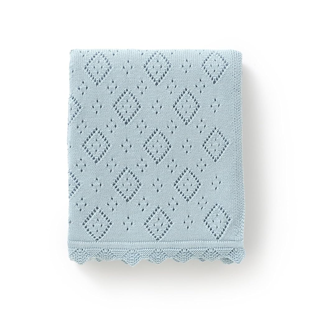 The knit pointelle design adds a lovely texture .the blanket provides a subtle stretch that makes swaddling a breeze. It fits comfortably around baby without being too tight, ensuring they feel secure yet can still move a bit and the periodic holes ,just in case of suffocation risk.