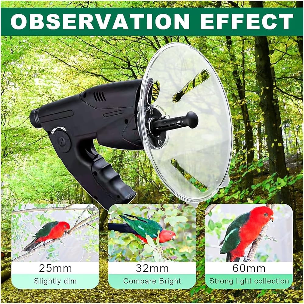 The built-in monocular telescope is perfect for observing animals at a distance or examining the minute details of small creatures. The sound detection system is powerful enough to monitor conversations up to 100 meters away, allowing you to fully observe and analyze the activities of surrounding animals. Our long-range birdwatching instrument is compact and lightweight, making it easy to carry. It is the perfect tool for birdwatchers who don't want to carry bulky installations.