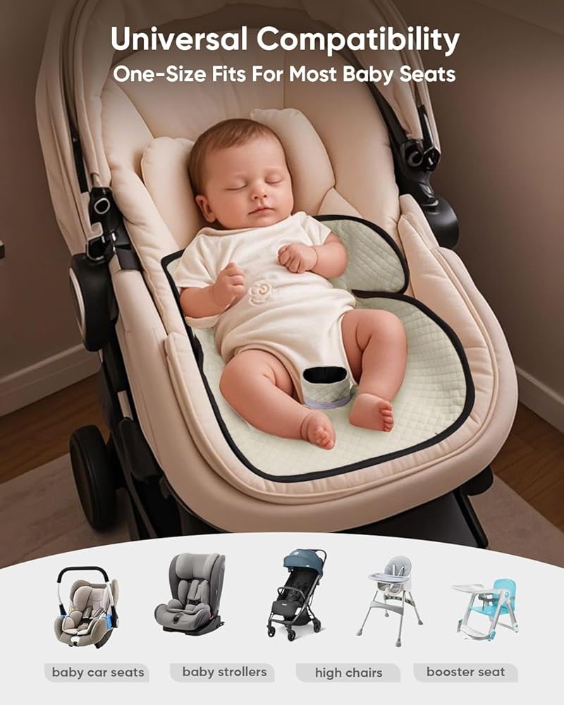 Universal Multi-Use Design. The carseat potty training cover one-size solution secure fit for most baby car seats, high chairs, strollers, and boosters across all major brands, compatible with Graco, Evenflo, Nuna, Diono, Britax,etc. The upper layer patternless fabric with diamond shaped embossing increases flow and water absorption efficiency while adapts to any decor, ideal for 6-48 month infants and potty training toddlers. A pair of strap covers to protect babies' shoulder from chafing and discomfort from the straps