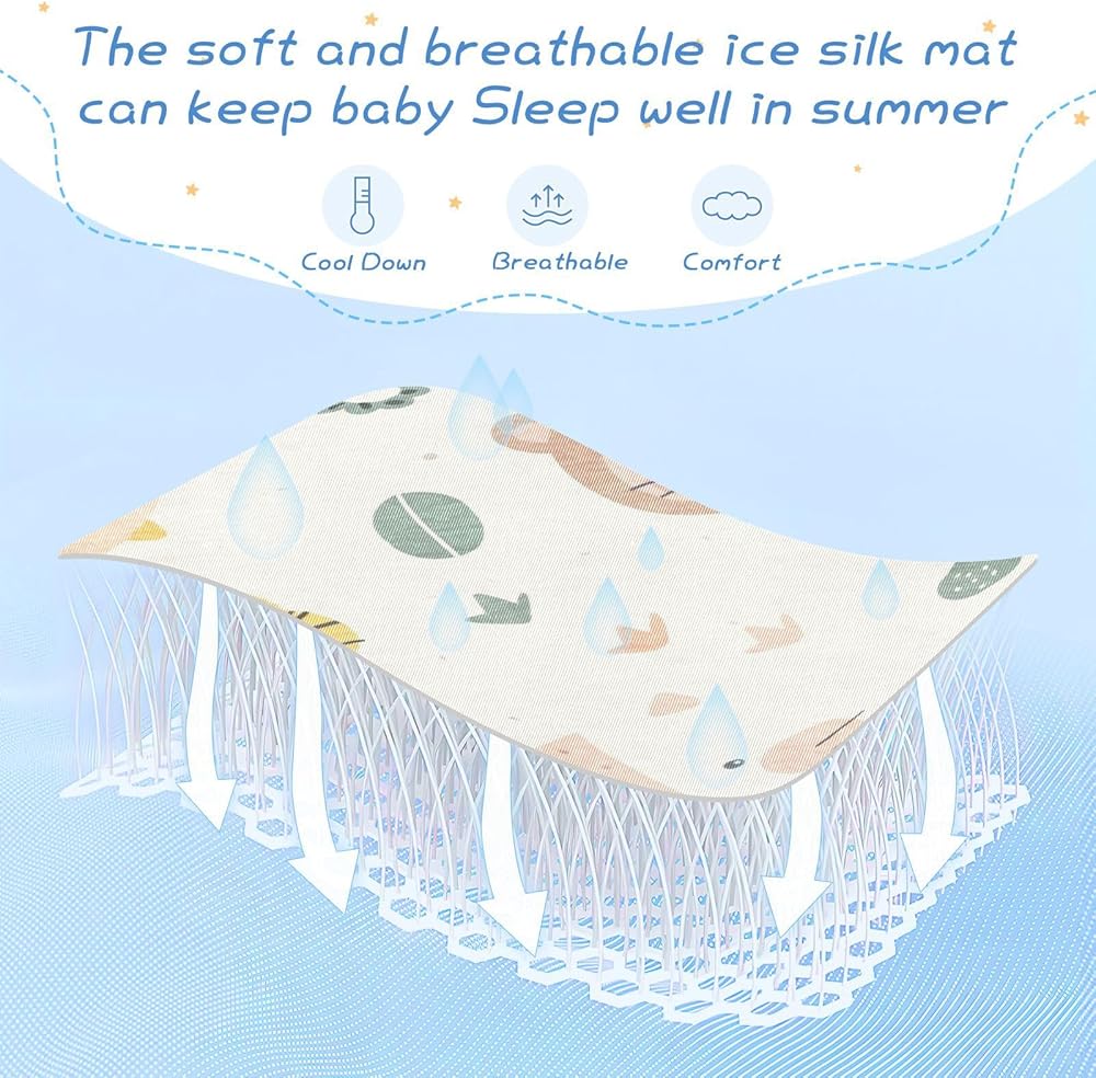 【Cooling Material】-- Made of ice silk fabric with breathable hole & thicken mesh, this crib waterproof mattress gives your baby coolness, coziness, and breath-ability in summer. Cool but not cold for your baby. Skin-friendly feature is good for baby in sensitive skin.
