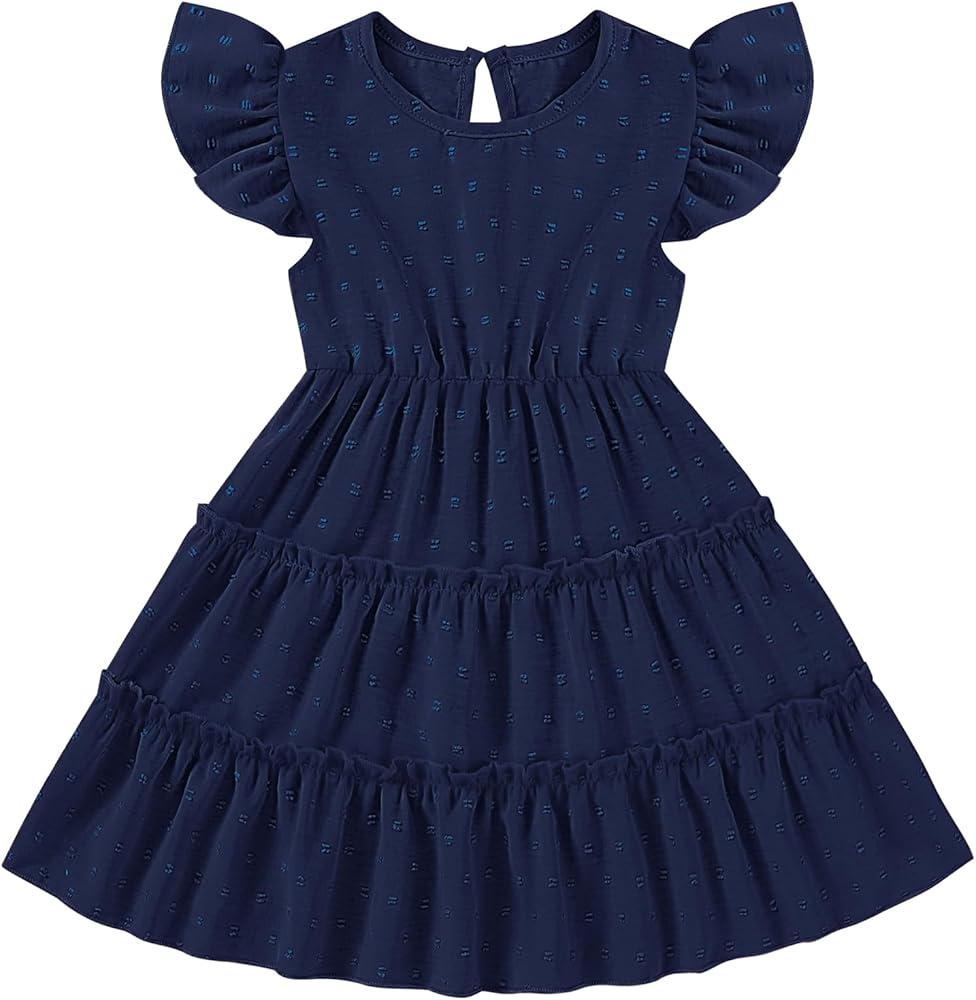 Ruffle Sleeve Design: Designed with playful ruffle sleeves and classic round neckline design, adding vigor and cuteness, baby girls' dresses the dress is not only elegant but also easy to wear, girls can stay comfortable in the baby summer dress