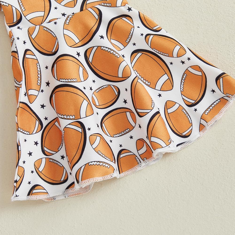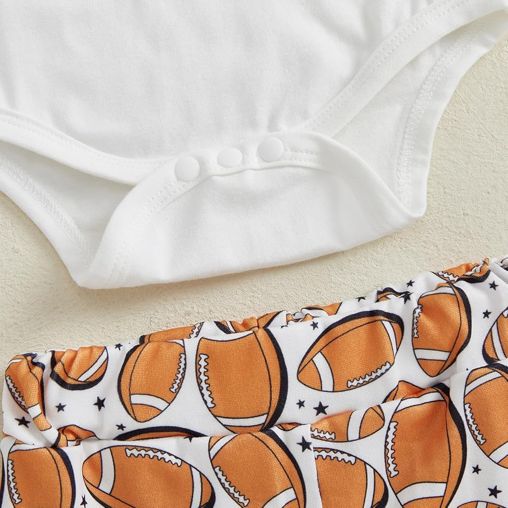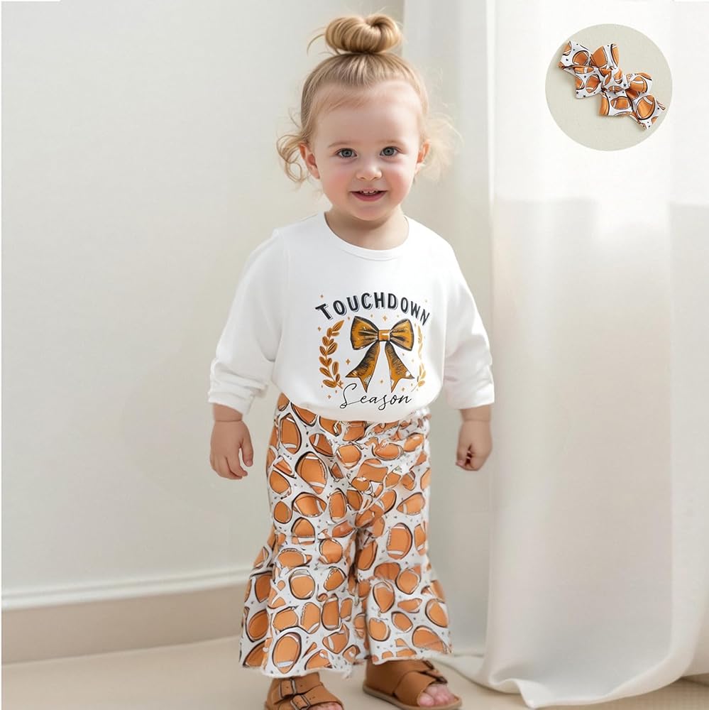 Baby Girl Football Outfit Game Day Long Sleeve Romper Rugby Print Bell Bottom Flare Pants Set Cute Fall Clothes