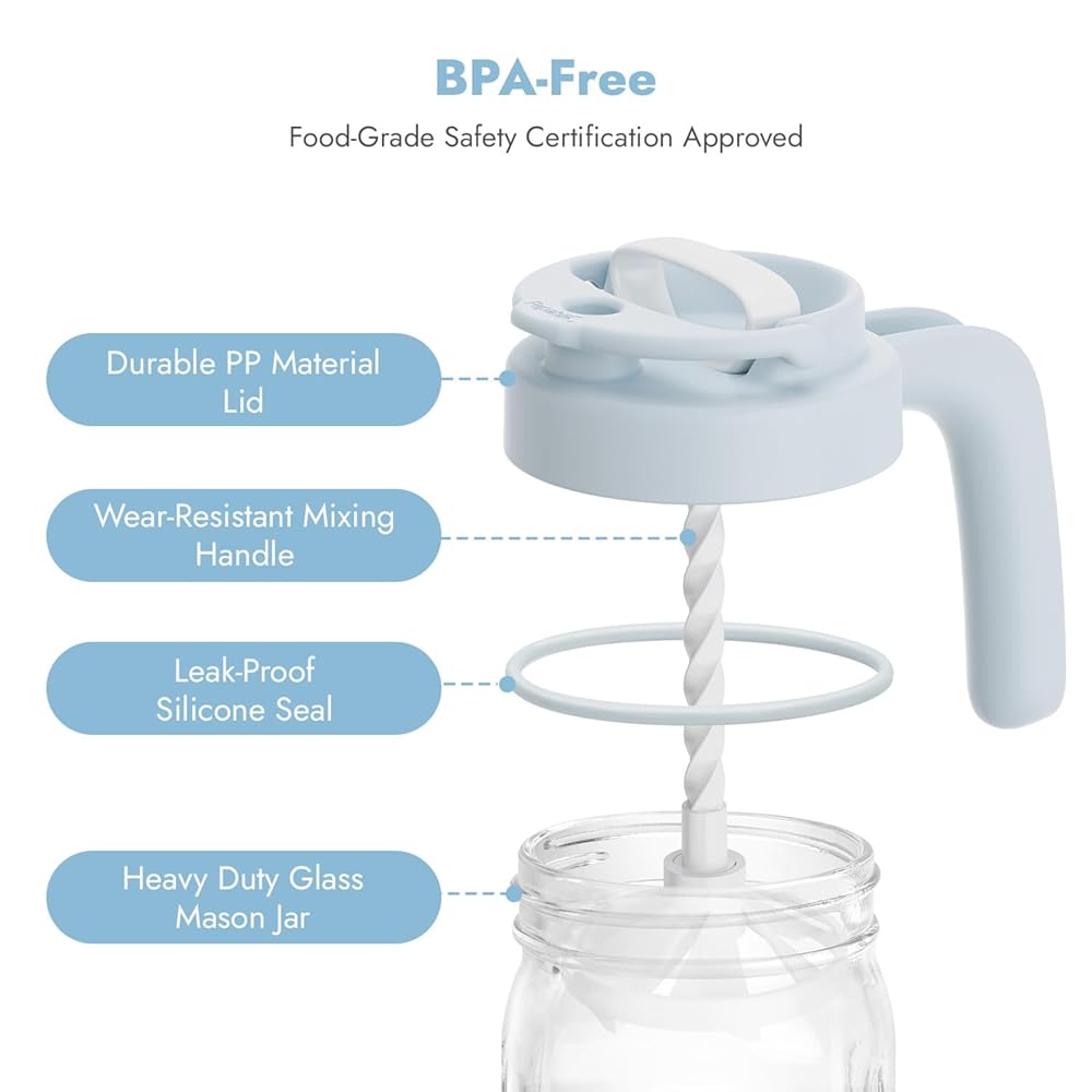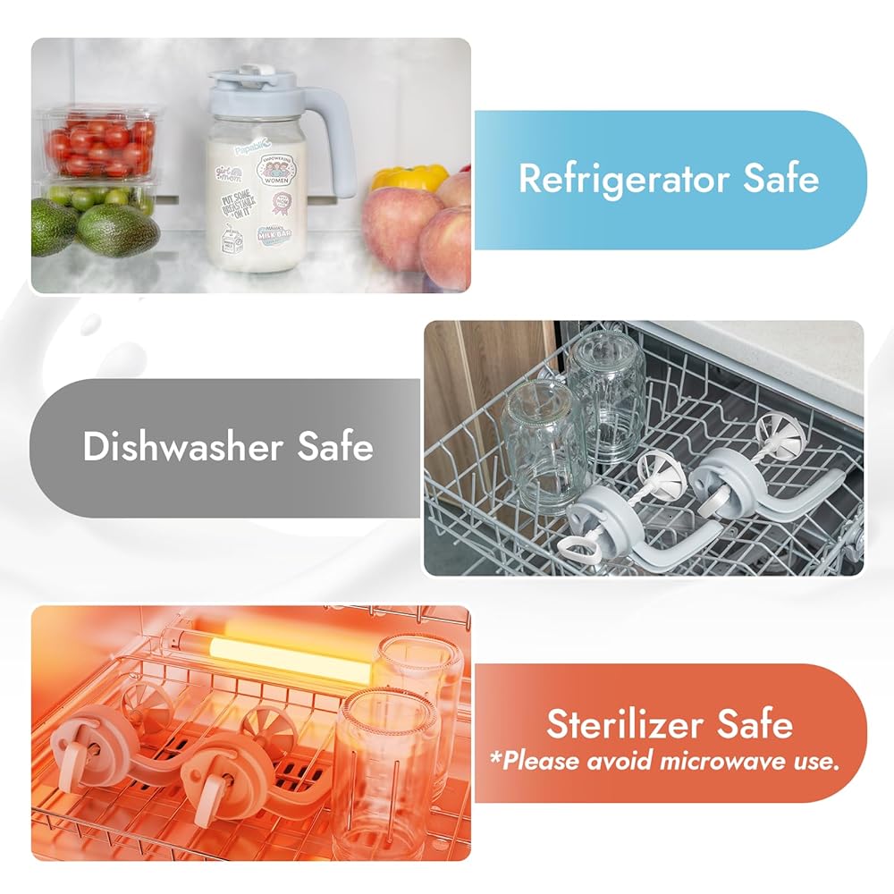 𝐒𝐚𝐟𝐞 & 𝐃𝐮𝐫𝐚𝐛𝐥𝐞 𝐆𝐥𝐚𝐬𝐬 𝐃𝐞𝐬𝐢𝐠𝐧: Built with a heavy-duty glass mason jar and a BPA-free, food-grade plastic lid, this formula mixing pitcher offers a durable, non-toxic, and odor-free solution for preparing formula or storing breastmilk. It's a safer and longer-lasting option than plastic containers.