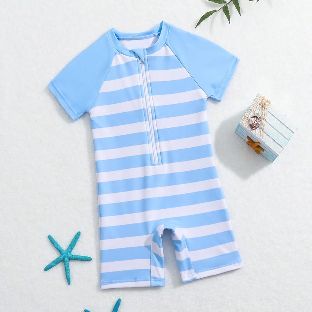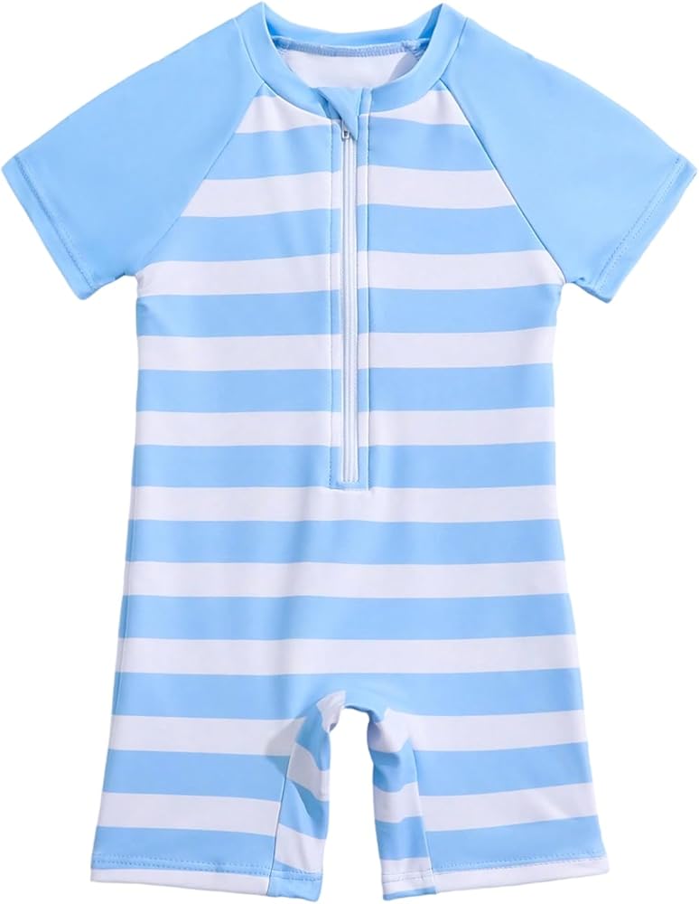 Baby Swimsuit Boy Infant One Piece Rash Guard Bathing Suit Short Sleeve Zipper Toddler Boys Beach Swimwear
