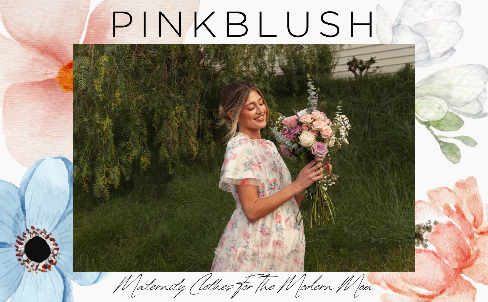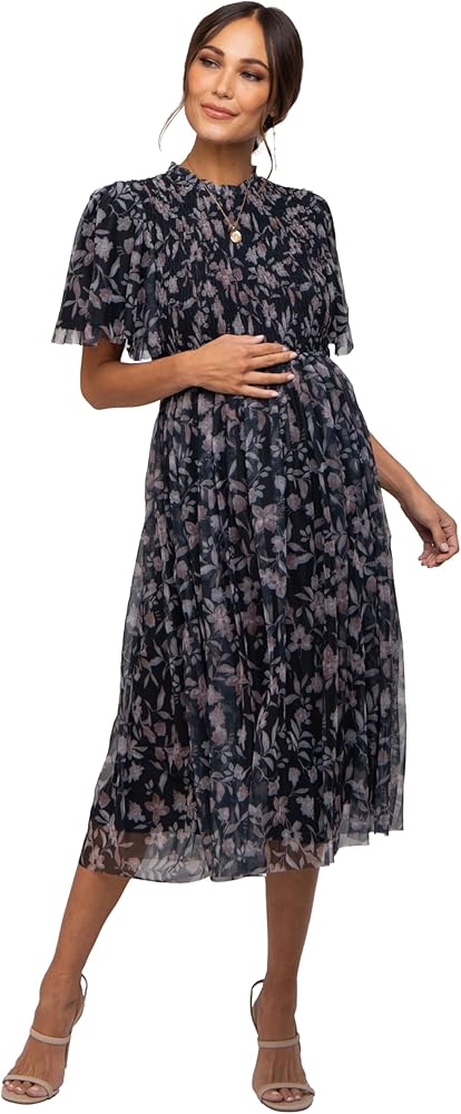 PinkBlush Floral Smocked Mesh Knit Maternity Midi Dress