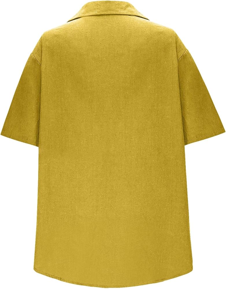 Women Linen Button Down Short Sleeve Lapel Collar Blouse Ladies Summer Casual Dressy V Neck Beach Cotton Shirt Tops