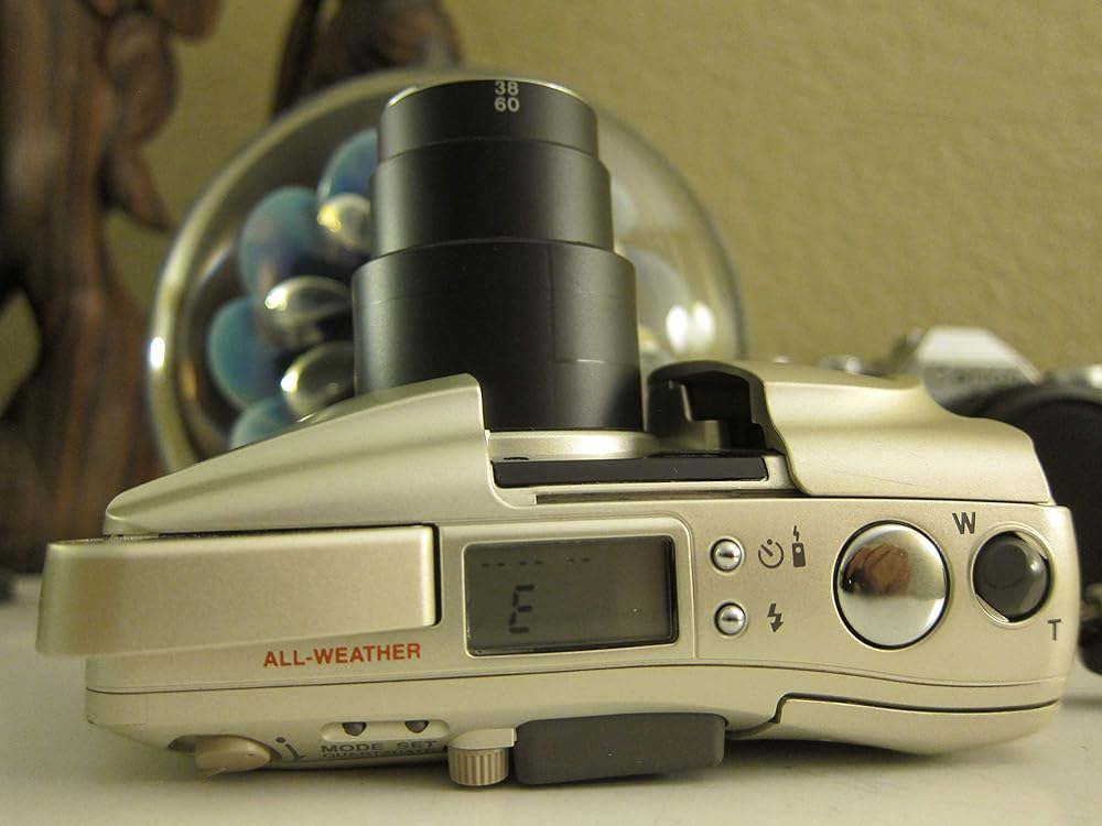 To turn the camera on, simply slide open the clamshell lens cover--out pops the lens and flash unit and you're ready to shoot. Control the zoom lens using a small rocker switch that's conveniently located on the top right of the camera next to the large shutter release button. The Stylus Zoom 115 has an autofocus system that can take in subjects as close as 2 feet. The camera's focus-lock feature lets you selectively focus on subjects that are outside the camera's autofocus range. Flash modes include red-eye reduction and night flash; the flash range extends to 16 feet. The camera includes a self-timer, date-time stamp, and a diopter viewfinder adjustment designed for farsighted and nearsighted users. On top of all this, the Stylus Zoom 115 is weatherproof. Although you can't take it scuba diving, the camera will survive accidental splashes and sprays. --Harry C. Edwards