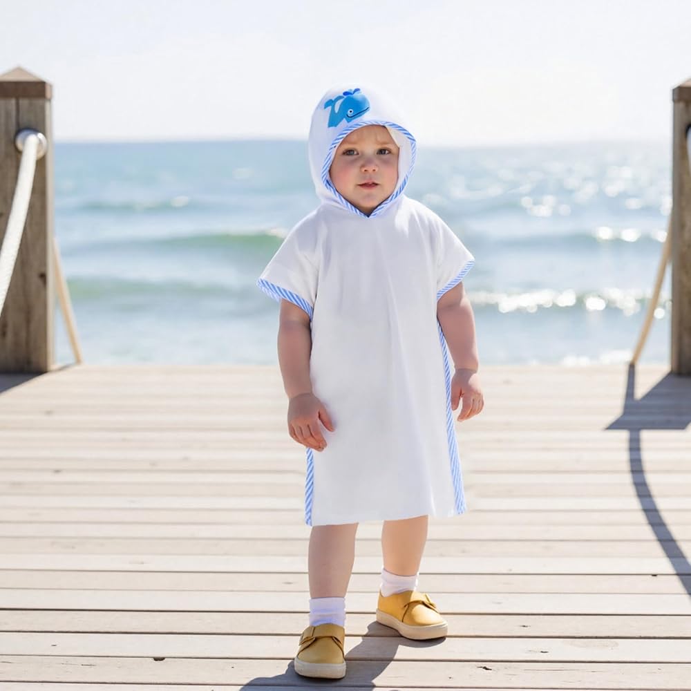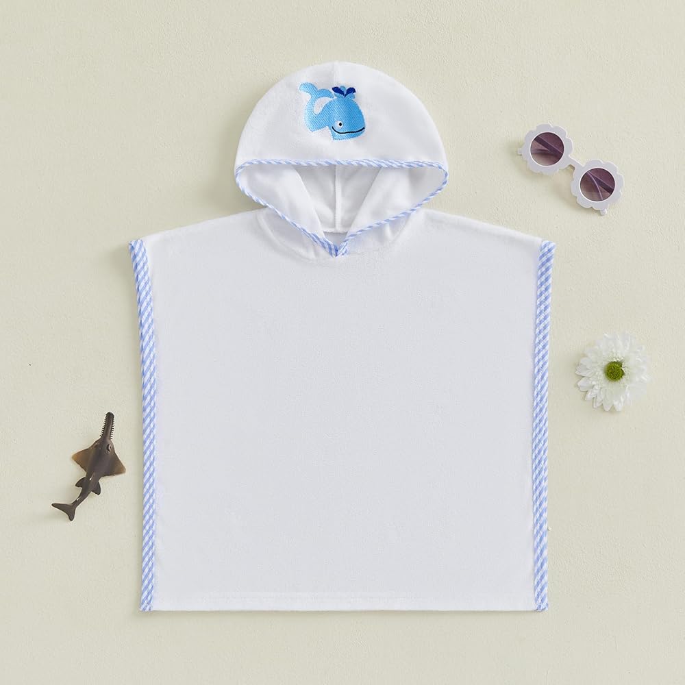 Kid Hooded Beach Poncho Towels Animal Embroidery Loose Fit Beach Robe Cover-up for Summer