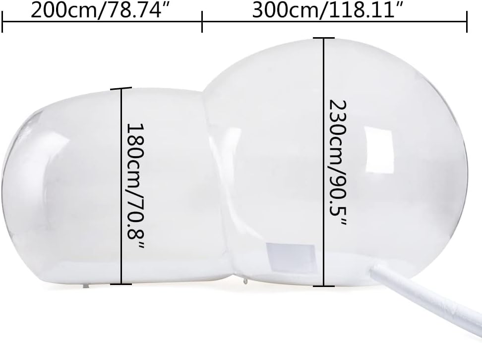 Bubble Tent Size: Length: 3 meter/118.11”, Height:230cm/90.5”