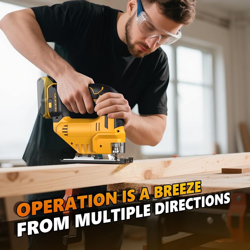 Compatible with Dewalt 20V MAX Battery: This cordless jigsaw compatible with DeWalt 20V Max batteries (DCB200, DCB201, DCB203, DCB204, DCB205, DCB206 and more), offering portability and freedom from cords. It ensures wire-free convenience and extended runtime for indoor/outdoor projects. Note: Battery not included.