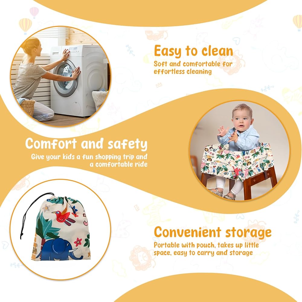 This shopping cart seat cover is a good choice for parents on the go, combining functionality, safety, and charm. It's designed to make every outing with your baby more comfortable and enjoyable. This baby cart seat cover is made from polyester, which is safe and breathable, suitable for shopping trips and restaurant high chairs.