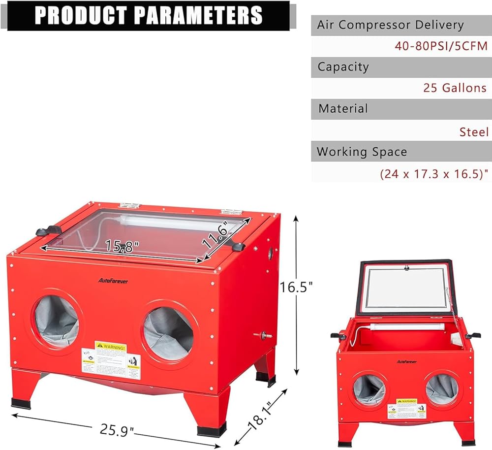 Sturdy and Durable:This sand blaster is made of sturdy steel with powdercoated finish that can resist rust and corrosion.Has the characteristics of pressure resistance, anti-deformation, rust resistance
