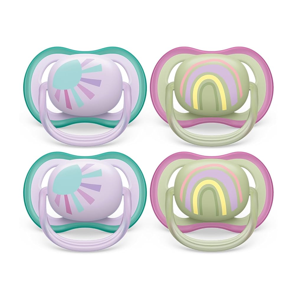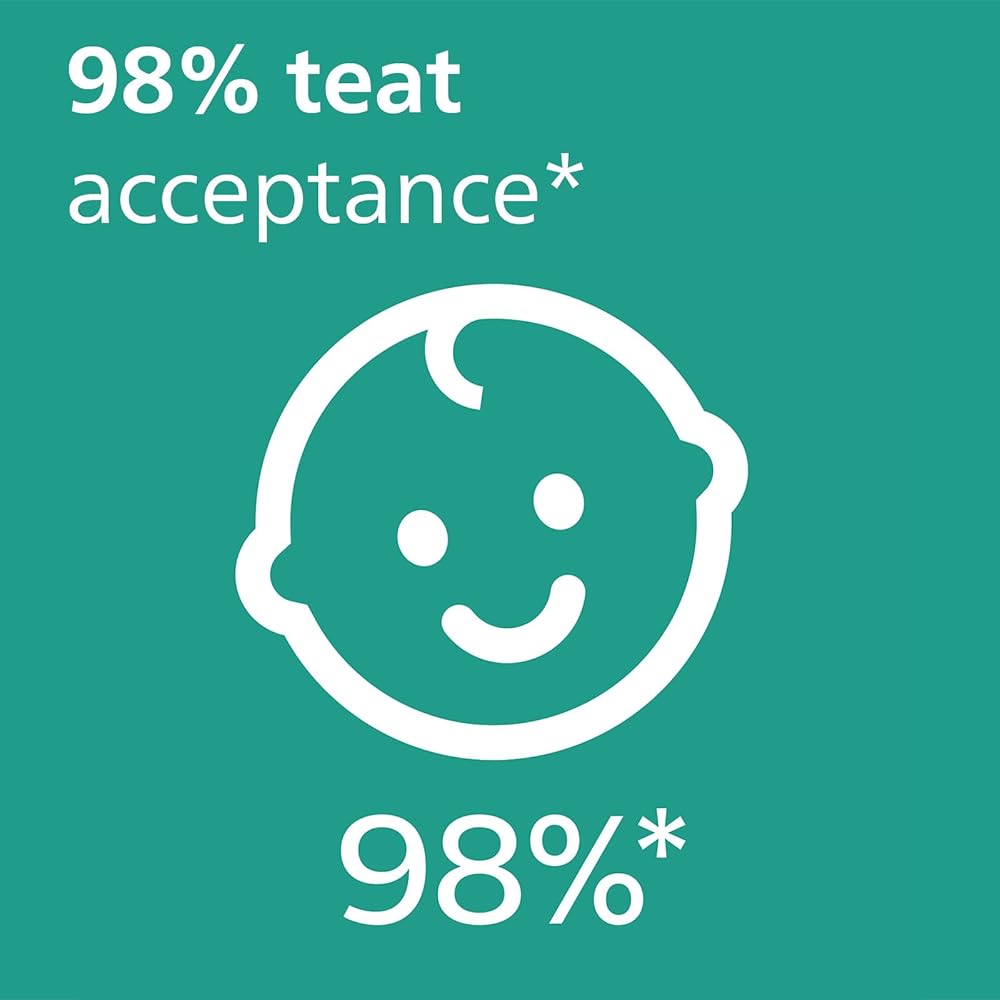 98% nipple acceptance*: When we asked moms how their little ones respond to our textured silicone nipples, on average 98%* said that their baby accepts Philips Avent Ultra Air pacifiers