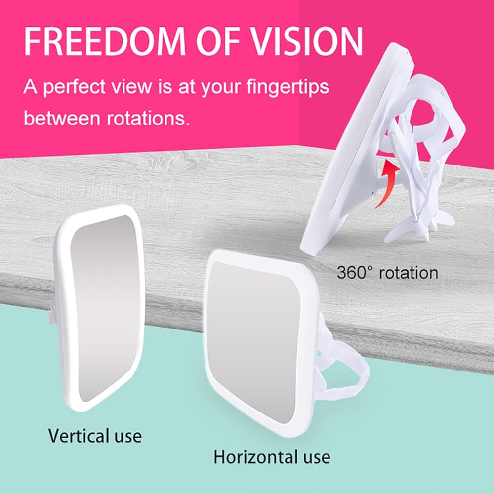 360-Degree Adjustable: You can easily rotate the rear view mirror to your desired viewing angle and see everything you need to see clearly; no need to turn around while driving, improving vehicle safety index, a must-have in your traveling gear
