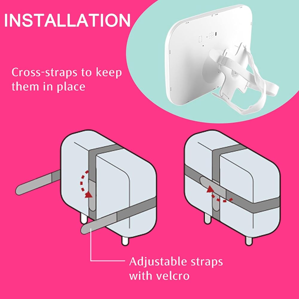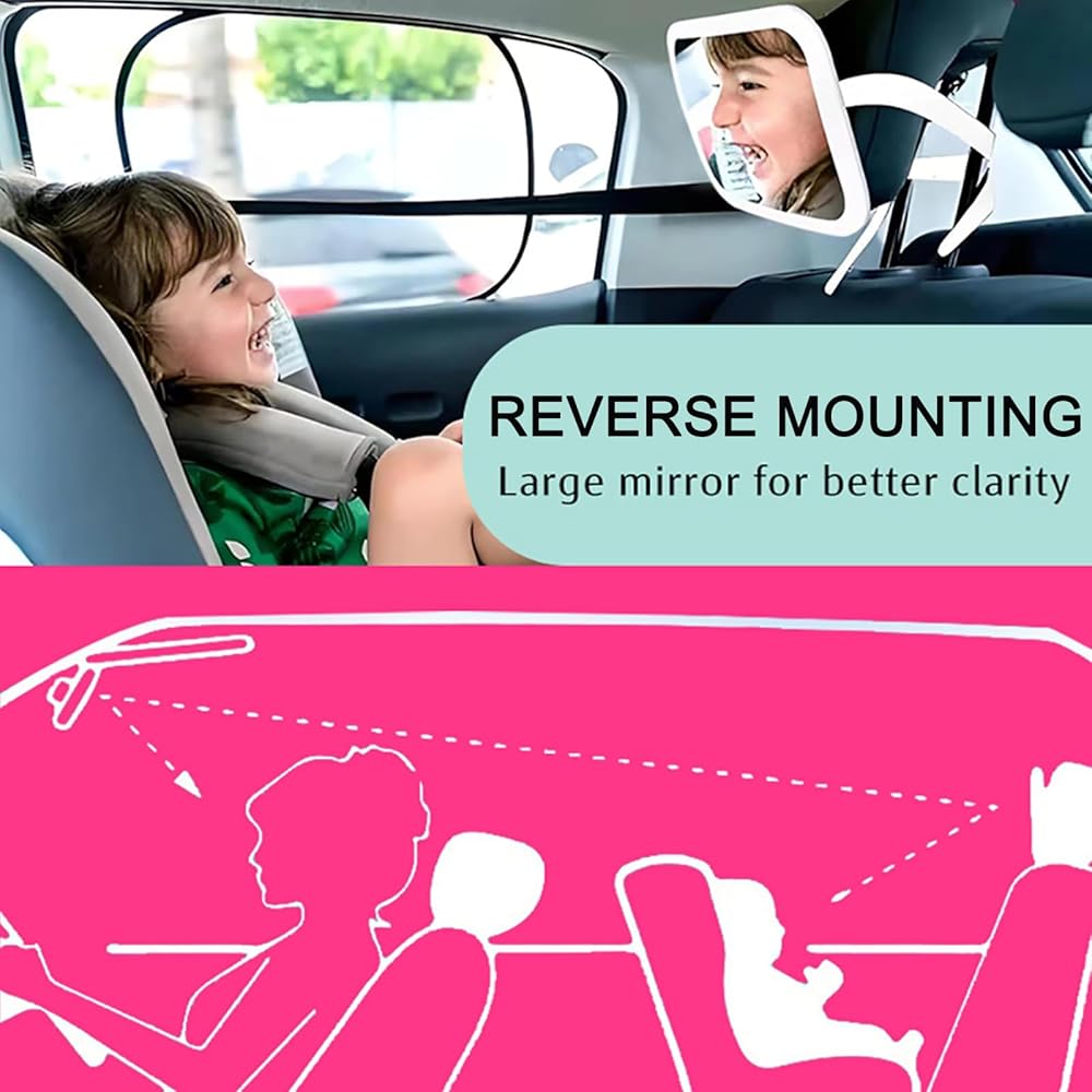 Design Features: The carseat mirrors rear facing is designed with convex imaging, which can provide enough field of vision. Equipped with 4 sturdy straps, the mirror stays firmly in place even on bumpy roads