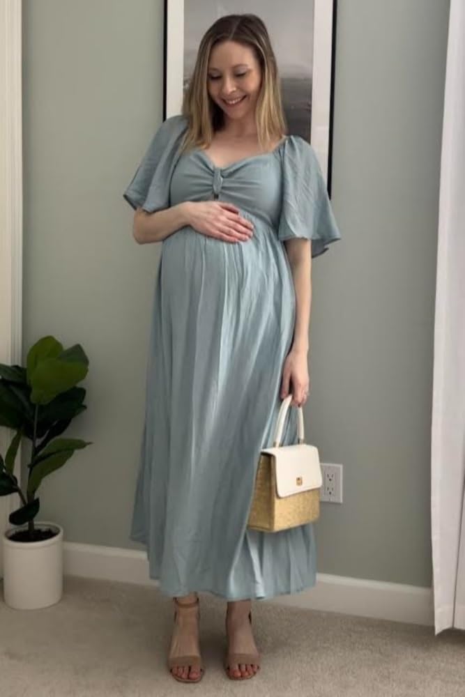 PinkBlush Front Tie Ruffle Sleeve Maternity Midi Dress