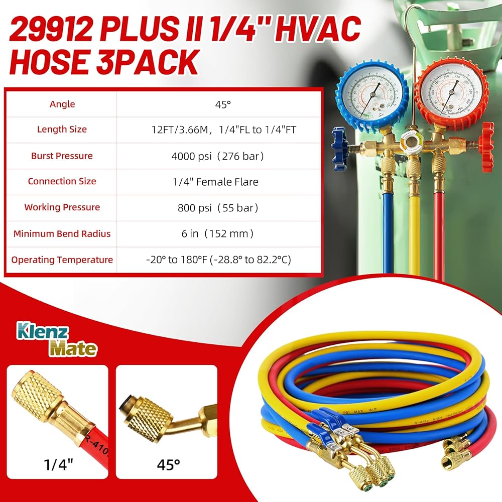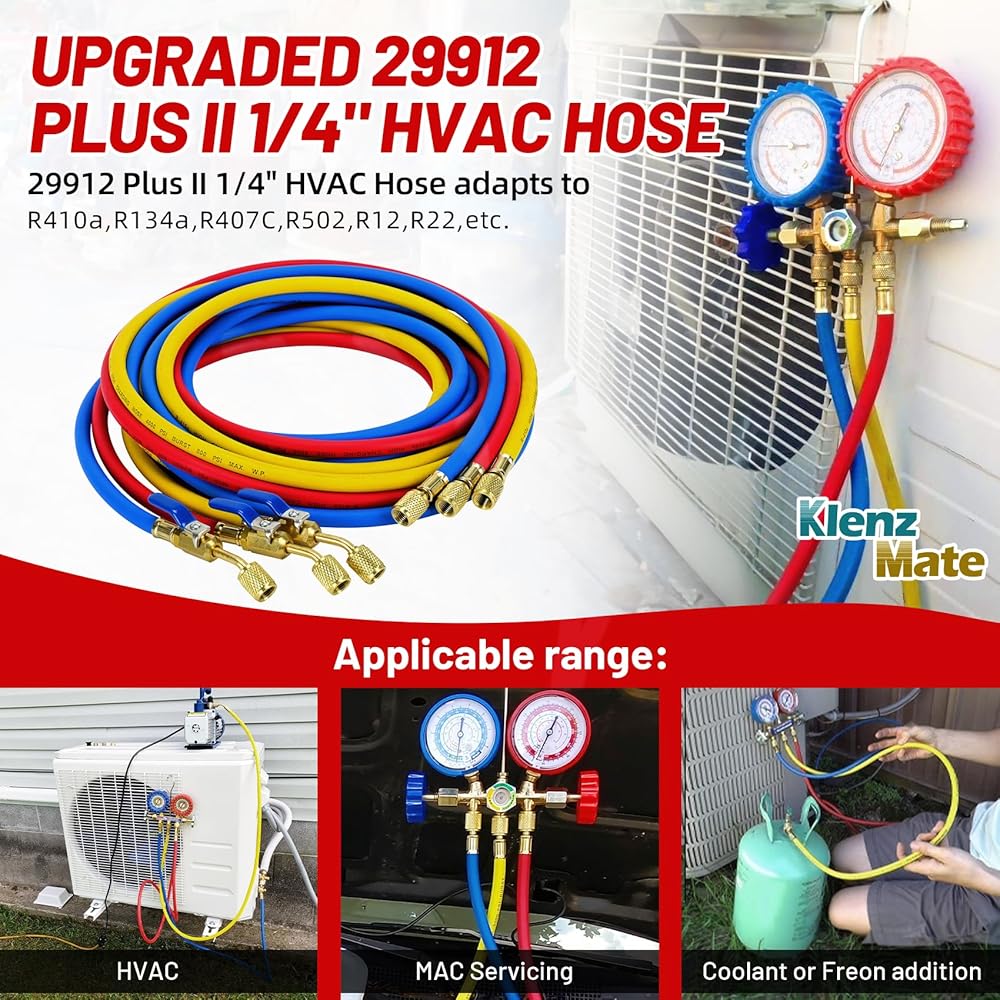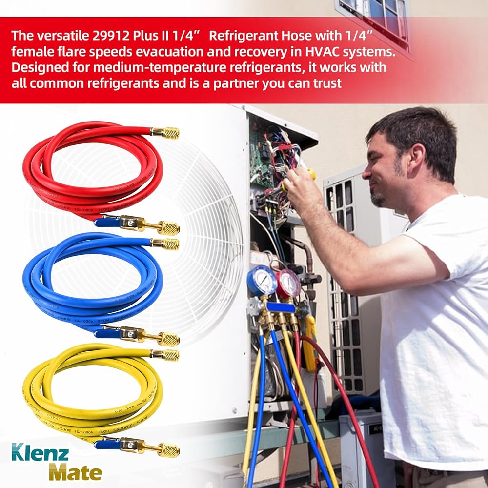 TIPS:Upgraded 29988 Plus II 1/4" HVAC hose is made with a 4-layer construction for low permeation.This ensures that refrigerants don't escape into the atmosphere during the process