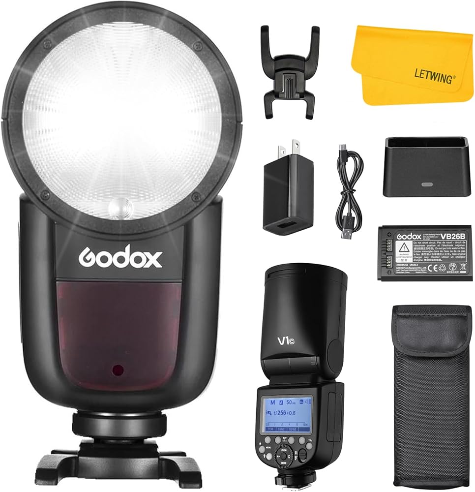 Excellent Light Effects: Godox v1 sony flash features round fresnel head, built-in LED modeling lamp is adjustable from 01 to 10 steps, Distributing even light from center to edge, providing natural and beautiful light effect, can be used on or off the camera, stable color temperature at 5600±200K over the entire power range, The zooming head (28-105 mm) features automatic and manual control, This head also has a Fresnel lens which can increasing its power
