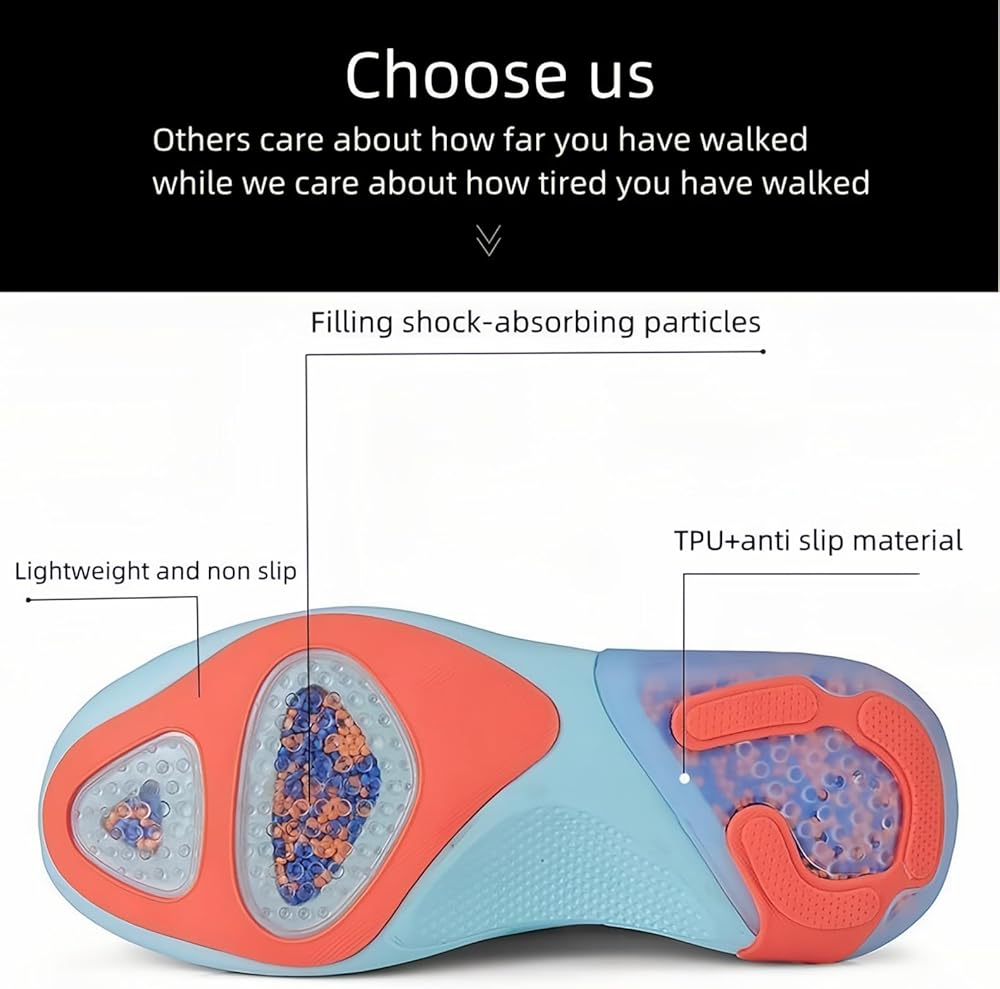 The sole of the shoe is filled with shock-absorbing particle material, which will fully reflect its function when we run or play basketball or tennis, effectively reducing the impact force of sports on our soles, knees, and providing better protection