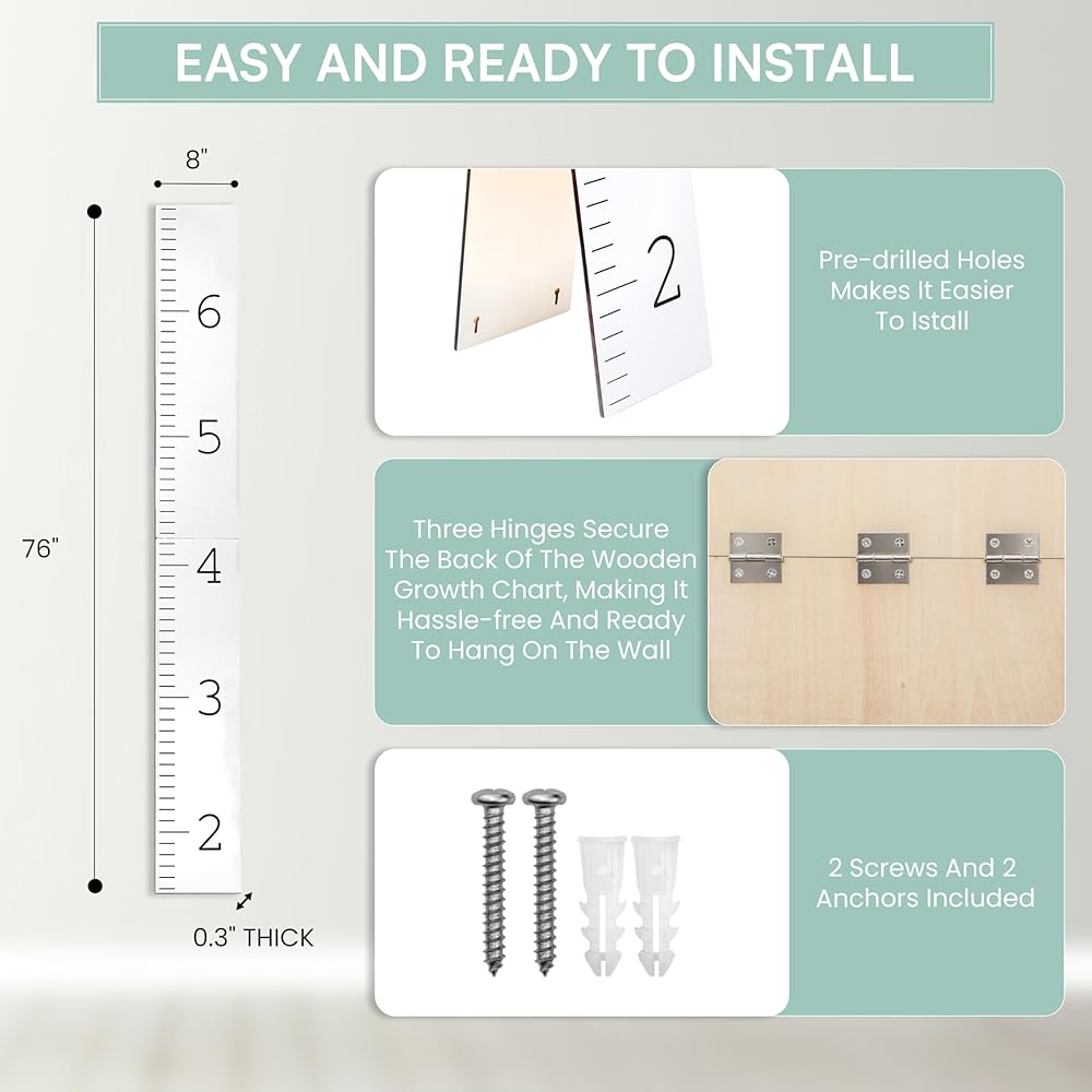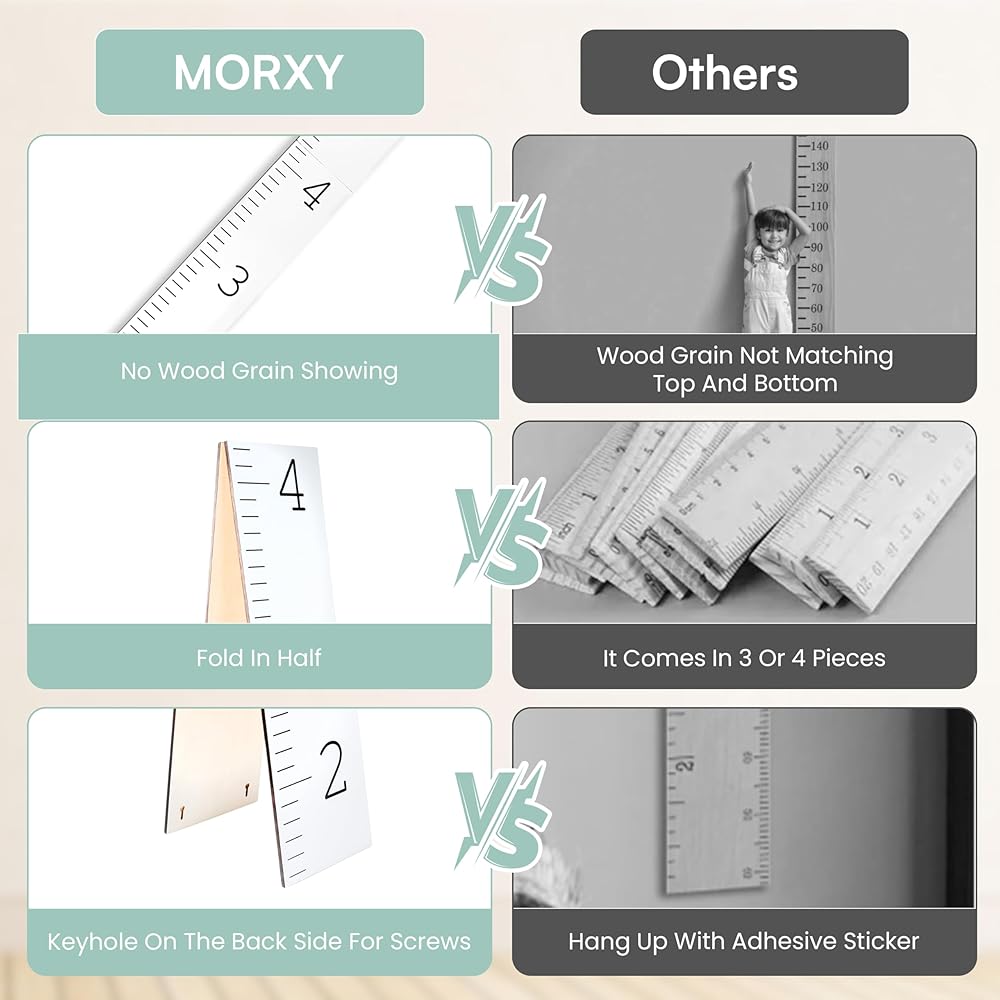 Easy to Hang & Store: Featuring a convenient two-part folding design for easy storage and handling, Morxy wooden height chart for kids comes pre assembled with a keyhole back and screws included. Hang it 5.5" off the ground for accuracy.