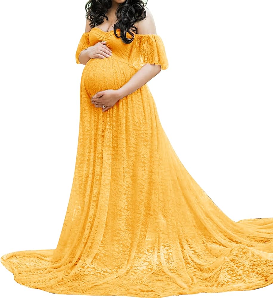 DESIGN: Women's 3D floral tulle maternity long dress chiffon fancy pregnancy shooting maxi gown with floor length, fashionable and classic. Lace is so flattering and pretty, off shoulder, strapless, sleeveless, long sleeve, V-neck, round neckline and loose fit. Sheer tulle hemline effortlessly shows off your beautiful baby bump.