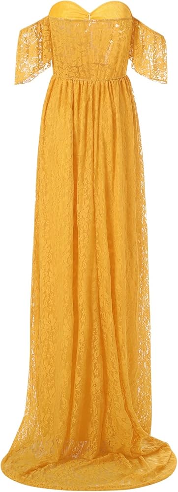 Maternity Floral Lace Dress Off Shoulder Maxi Photography Dress Elegant Chiffon Fancy Pregnancy Gown for Daily Wearing Baby Shower Photoshoot