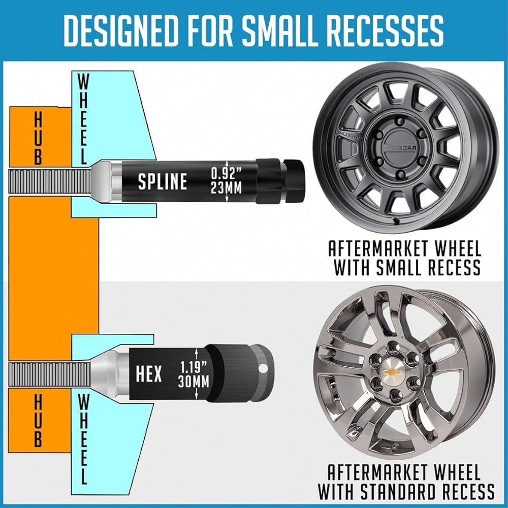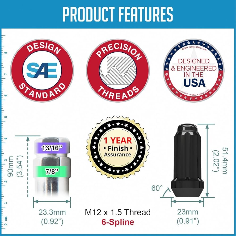 Designed in the USA. Our 1.90" Truck Spline Lug Nuts are typically used on pickup truck applications, where the OE studs are long and require a longer lug nut.