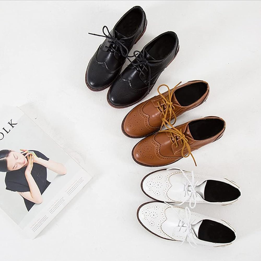 ZengyeZoo womens wingtip derby saddle shoes featuring low heel supporting every step with comfort and retro british oxford trimmed with brogue carving details, lace up closure to keep you firmly on-trend.