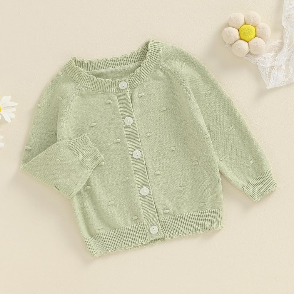 Girls Autumn Knit Sweater Long Sleeve Solid Color Button Up Cardigan Knitwear Coat