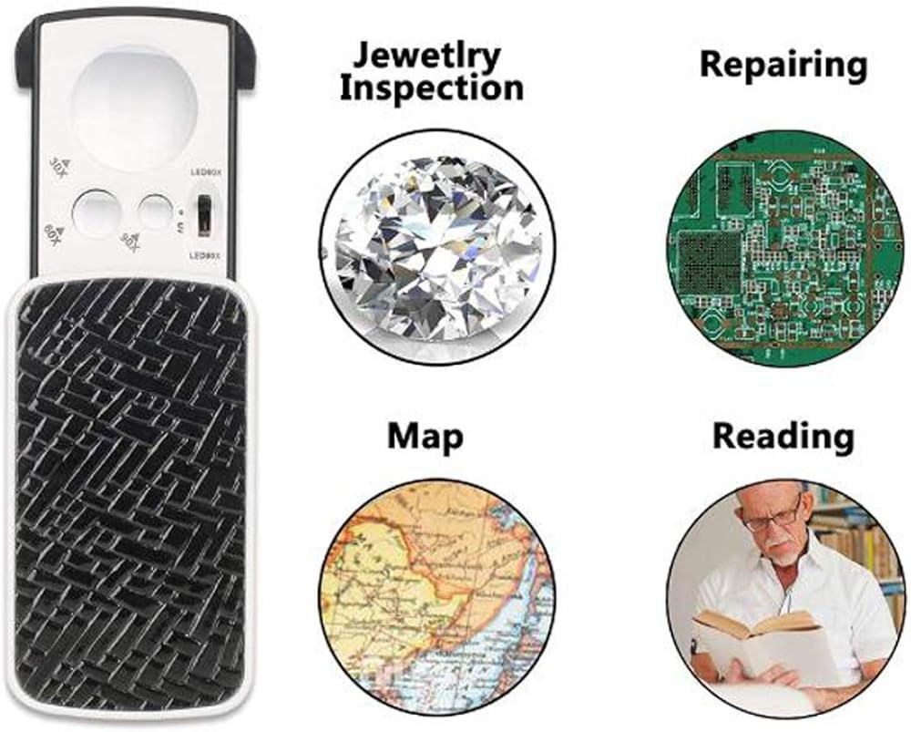 WIDELY USED - 5 interchangeable lenses: 1.0X, 1.5X, 2.0X, 2.5X, 3.5X in a storage box with a cleaning cloth; Ideal for field investigations, jewelry identification, electronics maintenance, model building, watch repair and micro engraving, coin and stamp collection/production, craftsmen, etc. The lenses are made of high quality ABS molded acrylic, providing clear text and images