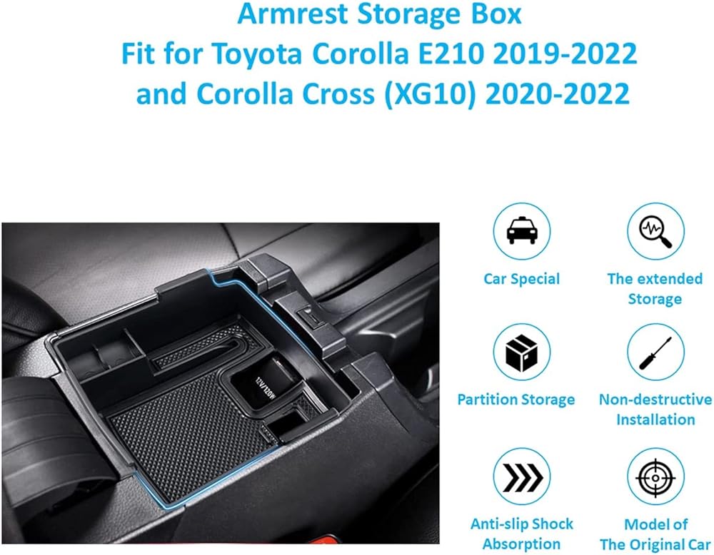 【Fit Trims】: Corolla / corolla cross center console organizer tray Precise compatible with 2023 2022 2021 2020 2019 Corolla E210 & 2023 2022 Corolla Cross XG10, greatly fits like a glove. Before your purchase,please confirm your car trim.