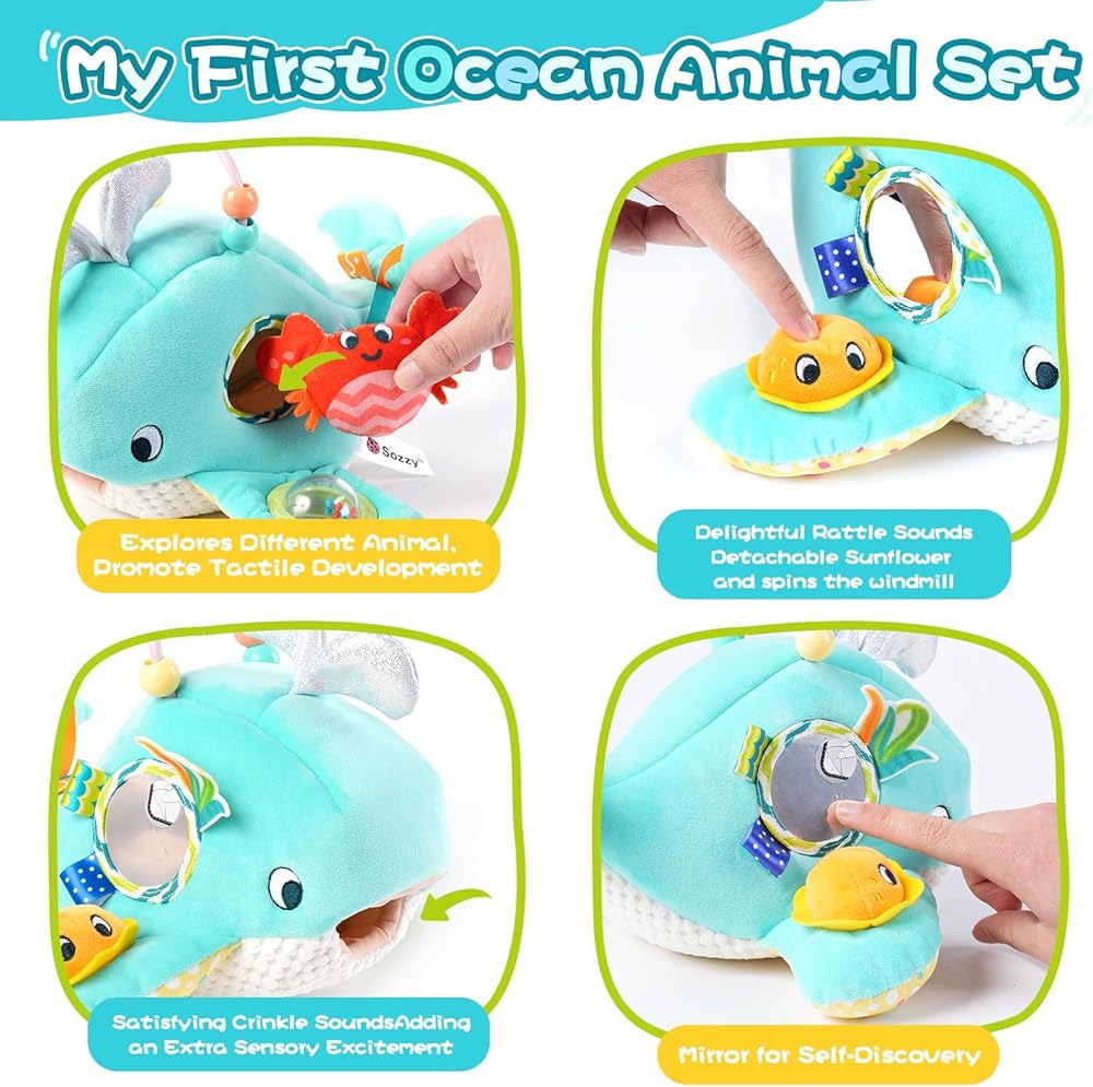 Gift-Ready Underwater Adventure: Sensory-rich whale house with 6 animals (seahorse, crab + more)—ideal for birthdays, baby showers, or early learning milestones.