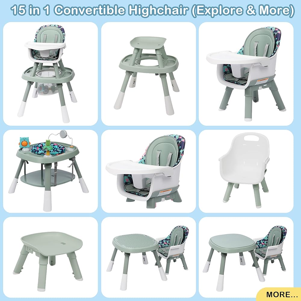 15-IN-1 CONVERTIBLE BABY HIGH CHAIR: This high chair seamlessly transforms into 15 versatile modes, including a full-size high chair, toddler chair, booster seat, activity center, and more. It grows with your baby, from 6 to 72 months, providing long-term value by adapting to their developmental needs