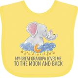 Welcome the new little one with our My Great Grandpa Loves Me To The Moon And Back Baby Bib featuring two happy elephants nestled amongst the night sky.