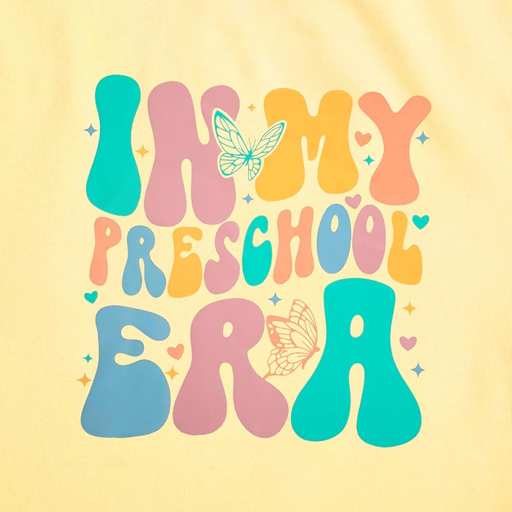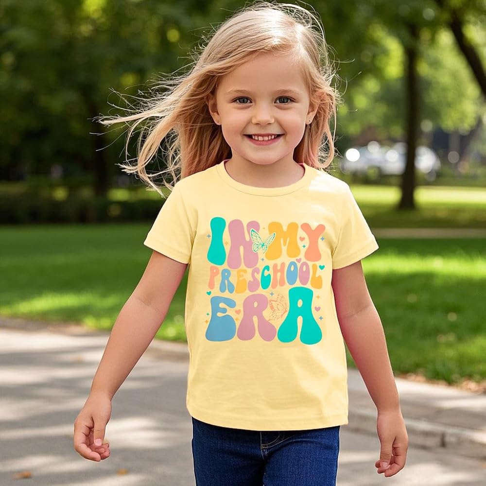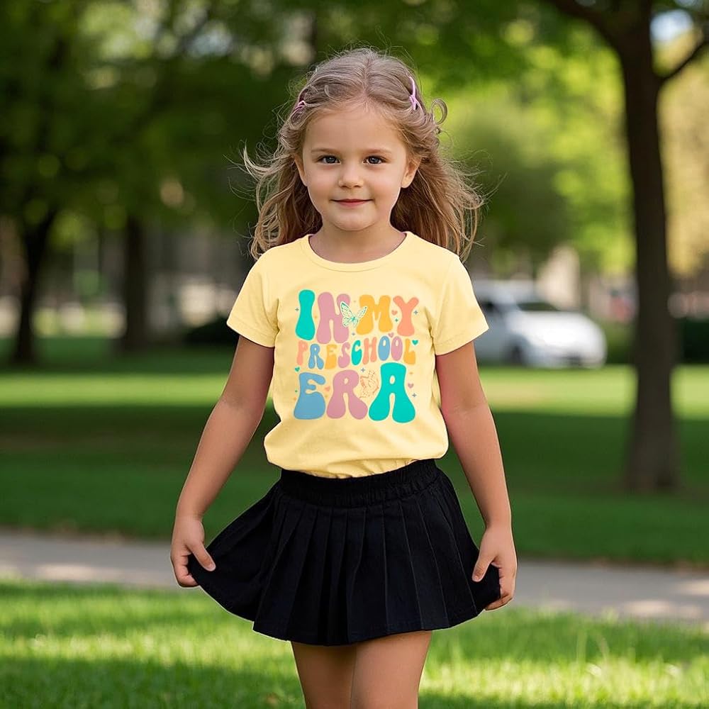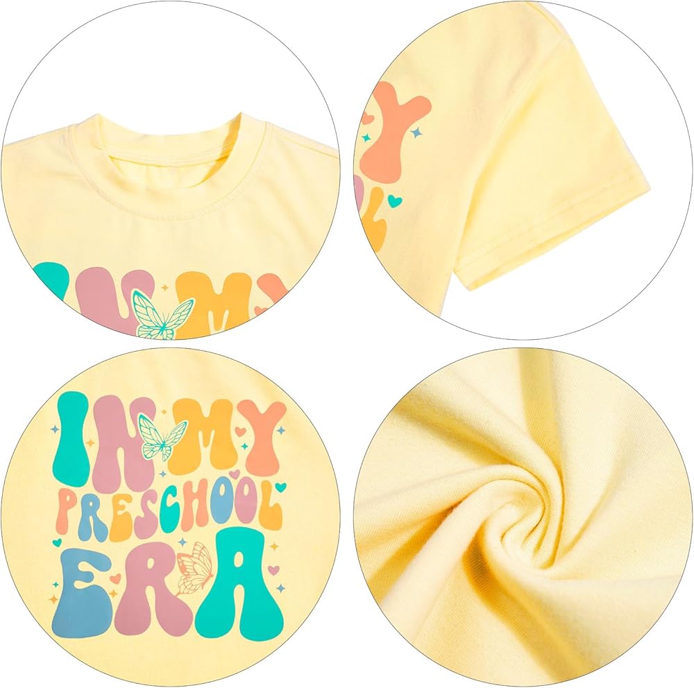 Features: Little girls back to school shirt tops, preschool shirt, classic round neck and short sleeves design, paired with " IN MY PRESCHOOL ERA " letter print, and star patterns, make your little angel shine! Perfect back to school of elementary school gift for a boy or girl.