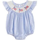 • MATERIAL: Cotton blend smocked romper bubble onesie, 4th of july baby girl outfits, soft and comfortable cute and boutique american flag baby girl outfit, 4th of july outfit for baby girls