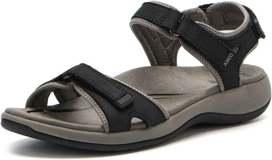 Built to support you on your outdoor escapades, the ABEO Goleta offers three points of adjustability to ensure a secure and customized fit. Our women's sandals are crafted with water-resistant leather uppers and our innovative BIOsystem orthotic footbed, promising superior arch and heel support with responsive cushioning. A flexible and grippy rubber outsole on these sandals for women offers increased traction and wear-resistance, ensuring you have the best hiking sandals for a variety of terrains. These strappy sandals are sure to be your next go-to for supportive footwear. Superior Arch & Heel Support - Exceptional arch support helps reduce pressure on joints by properly distributing weight and balance. Our cushioned deep heel cup helps absorb shock, preserve your natural heel pad, and properly align the body. Water-Resistant Leather UpperBuilt-In Orthotic Insole - Our exclusive active BIOsystem orthotic footbed delivers a perfect balance of anatomical support, responsive cushioning and balanced alignment for exceptional all-day comfort. 3 Adjustable Heel, Instep & Forefoot Straps Sturdy & Durable Rubber OutsoleHelp Relieve Foot Pain & Fatigue Ergonomic cushioned soles soften steps to help foot and heel pain. Deep heel cup helps stabilize feet and align the body to minimize fatigue. Wider fit offers more room for wide or swollen feet. Help Alleviate Common Foot Conditions Plantar fasciitis: Weight balancing arch support and cushioned heel cup reduce shock to help relieve plantar fasciitisMetatarsalgia: Metatarsal footbed option has built-in metatarsal pad to help with forefoot pain. Bunions/Morton's neuroma: Spacious toe box and added depth helps reduce pressure. Â