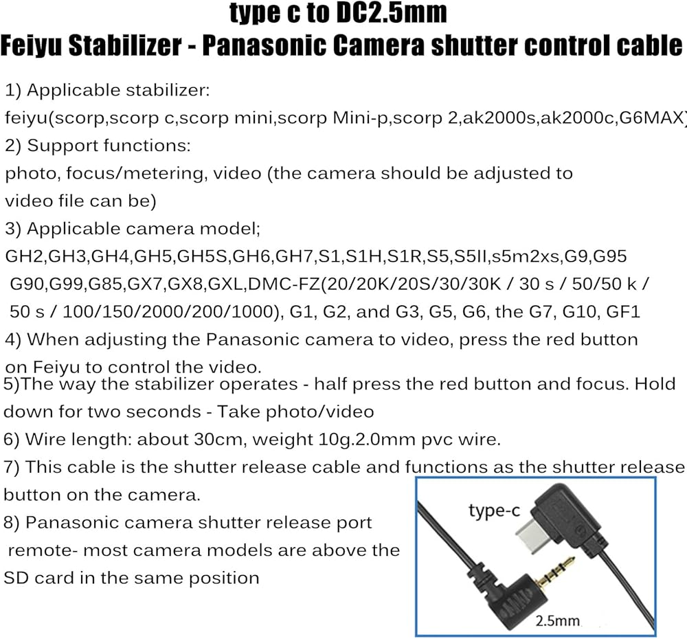 1) Applicable stabilizer: feiyu(scorp,scorp c,scorp mini,scorp Mini-p,scorp 2,ak2000s,ak2000c,G6MAX)