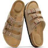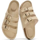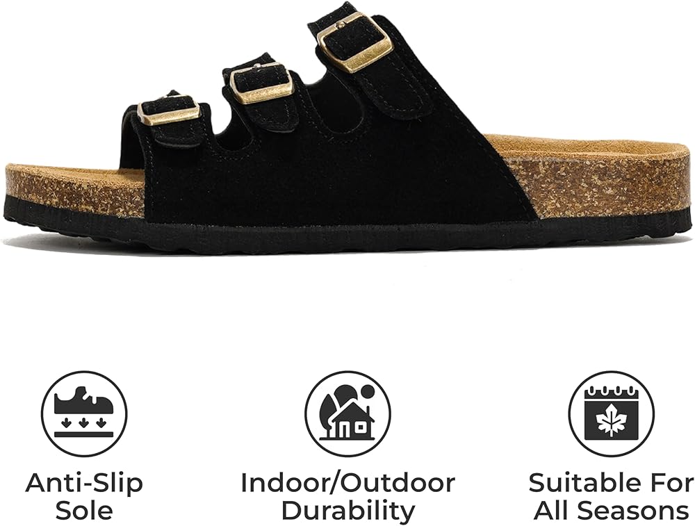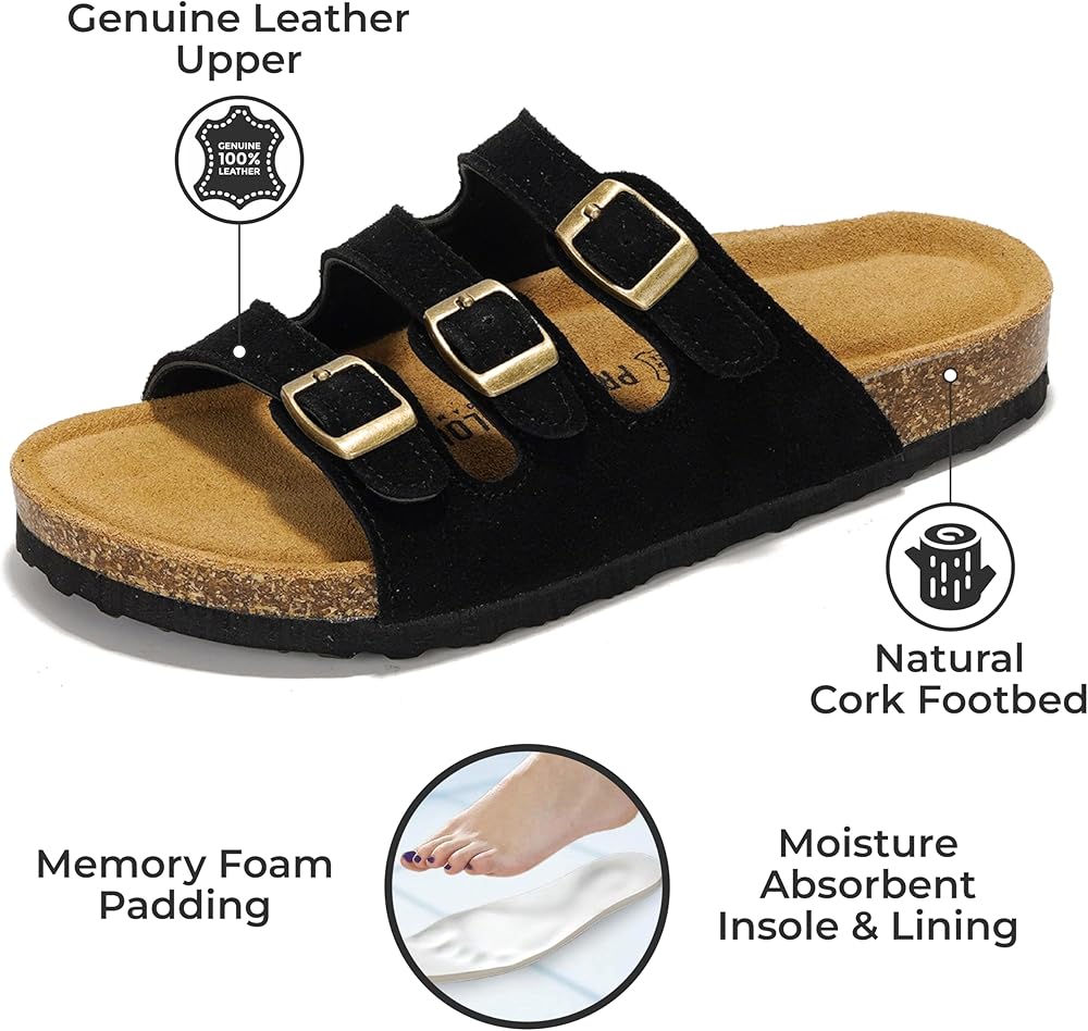 𝗚𝗲𝗻𝘂𝗶𝗻𝗲 𝗟𝗲𝗮𝘁𝗵𝗲𝗿 𝗖𝗿𝗮𝗳𝘁𝘀𝗺𝗮𝗻𝘀𝗵𝗶𝗽: Made with premium genuine leather upper, these womens sandals comfortable offer luxurious feel and durability. Paired with a memory foam insole and natural cork footbed, they're the ultimate summer sandals for women 2025 who prioritize quality and comfort.