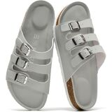 𝗧𝗿𝗶𝗽𝗹𝗲-𝗦𝘁𝗿𝗮𝗽 𝗦𝘁𝘆𝗹𝗲: Designed with adjustable triple straps, these womens slides offer a secure fit and modern look, making them a must-have in your women footwear collection.