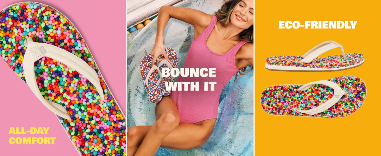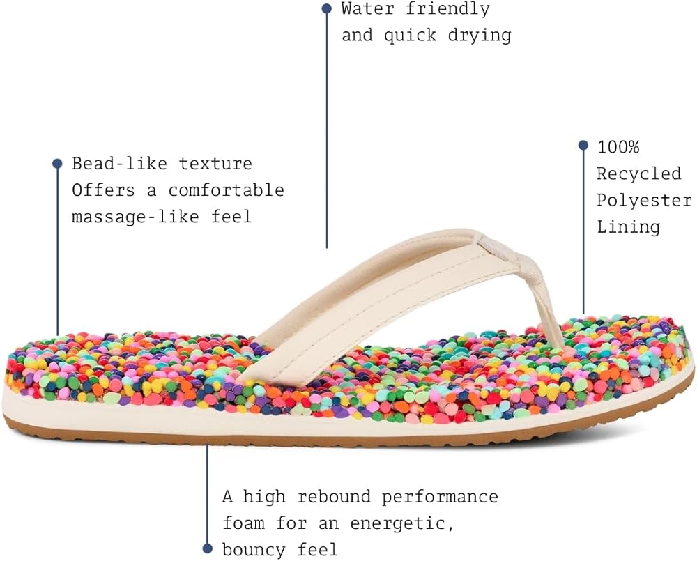 FUN ETPU FOOTBED WITH MASSAGING TEXTURE – The innovative multicolored ETPU footbed offers a squishy, bead-like texture for a massage-like sensation. It delivers superior bounce and energy return, making these women's beach sandals ideal for all-day wear.