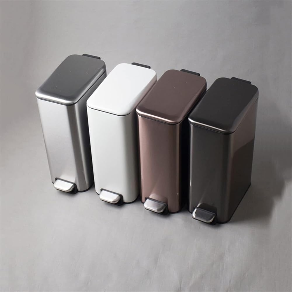 This stainless steel rectangular trash can is the perfect solution for narrow spaces. With its 8L capacity, it is ideal for use in bathrooms, kitchens, and offices, where space is at a . The stainless steel exterior is both stylish and easy to clean, while the plastic inner barrel ensures long-lasting use. The foot-operated pedal allows for a hands-, hygienic experience when disposing of waste. Available in four colors, this sleek and modern trash can fits seamlessly into any home or office decor. Whether you need a trash bin for the bathroom or kitchen, this compact and functional design is a great choice for any environment.
