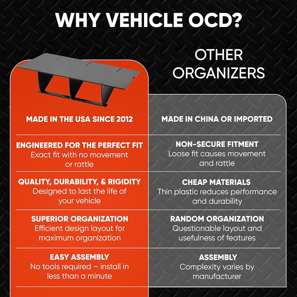ORGANIZE YOUR RIDE with American made Vehicle OCD brand products. Designed and engineered for the perfect fit. Salex Organizers part no. SLX145