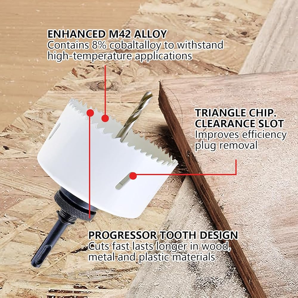 High Quality: The M3 Bi-Metal Hole Saw Set is made of premium M3 high-speed steel, ensuring excellent toughness and longer life. The rock-solid wood hole saw set blades have a wide slot on each hole saw to effectively remove sawdust, debris, and plugs.