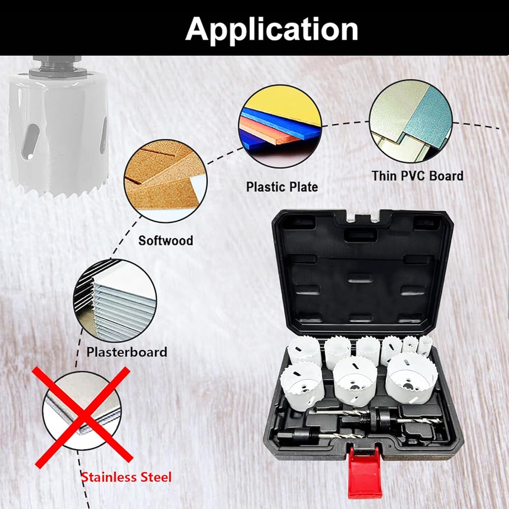 Fast Hole Opening: High-speed steel bimetal with sharp teeth, perfect for opening holes in metal, PVC board, wood, plastic and drywall, cutting faster and cleaner. Different hole saw sizes can meet your different cutting needs.