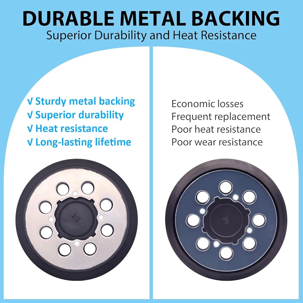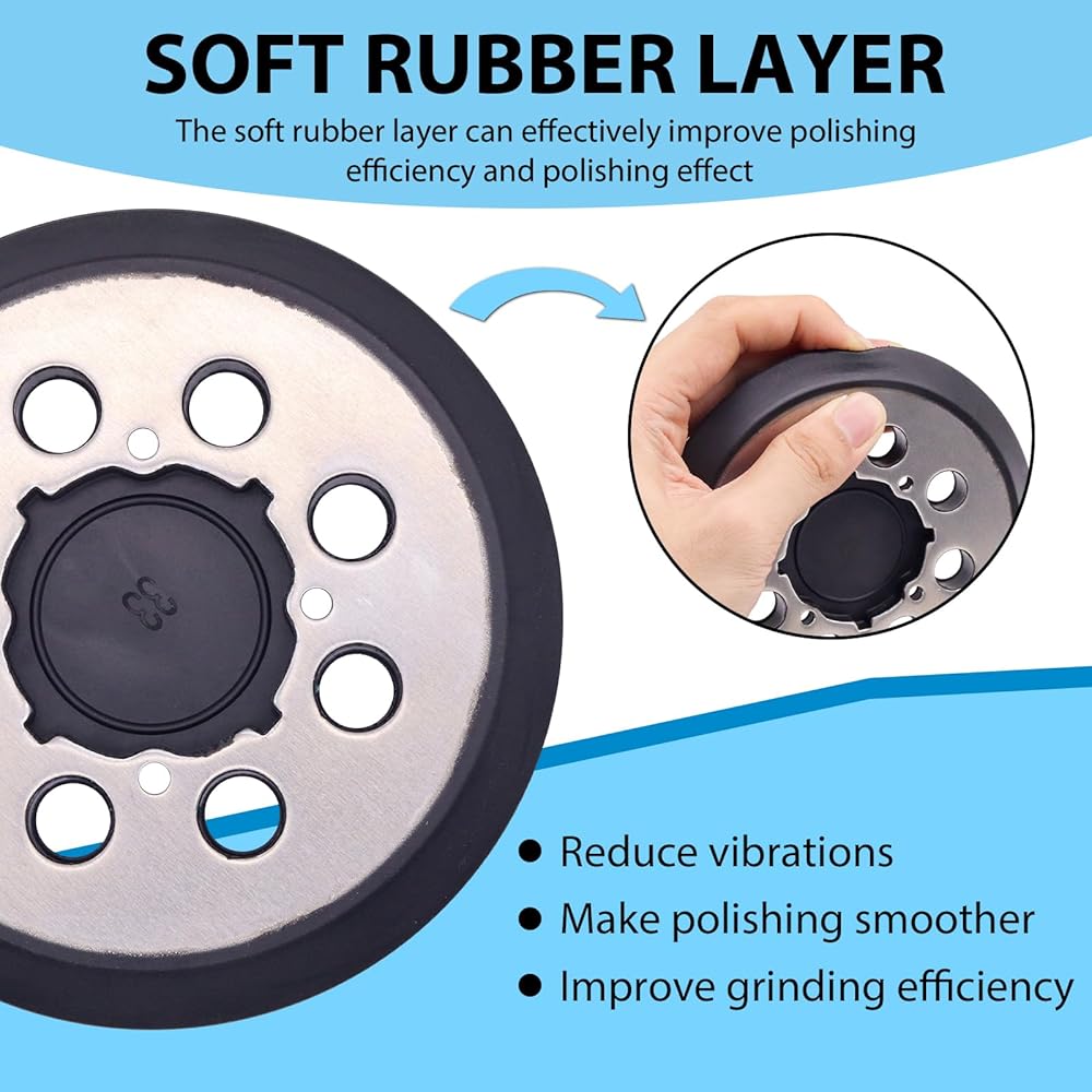 Premium materials:The metal backing plate provides superior durability and heat resistance, the soft rubber material effectively reduces vibrations from your orbital sander, ensuring a more comfortable and precise work process