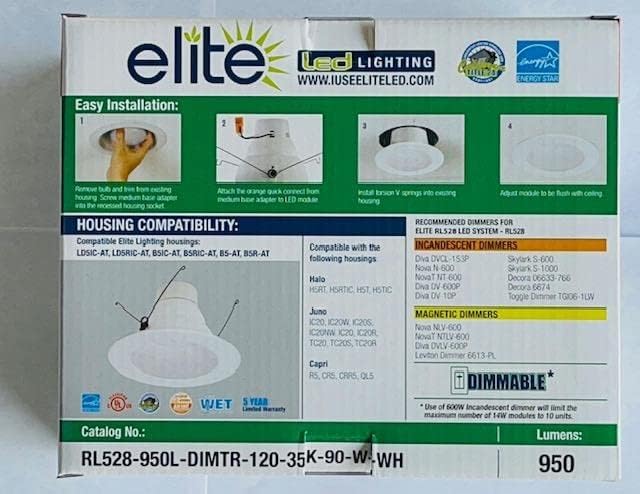 Elite RL528 5 Inch Universal LED Retrofit Reflector Lighting Module, White (2700K)