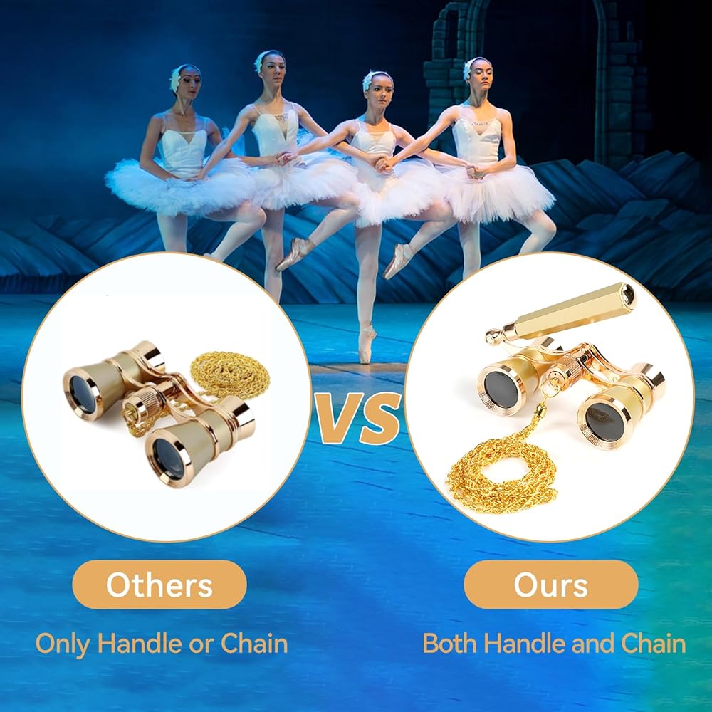 [Gorgeous Mini Opera Glasses]- BOSTRON 3x25 theatre binoculars feature a vintage-inspired design with foldable handle & luxury chain. Ultra-lightweight fits in purses/pockets, perfect for operas, concerts and horse races.